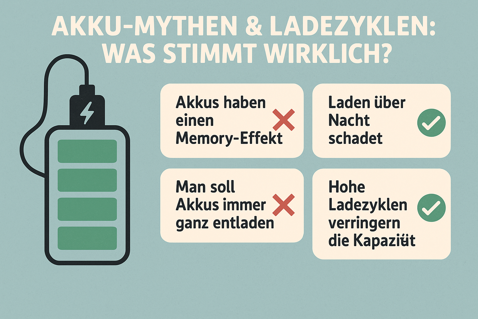 „Nie unter 20 % entladen!“, „Lad’ nur bei Raumtemperatur!“, „Lass den Akku nie voll über Nacht!“